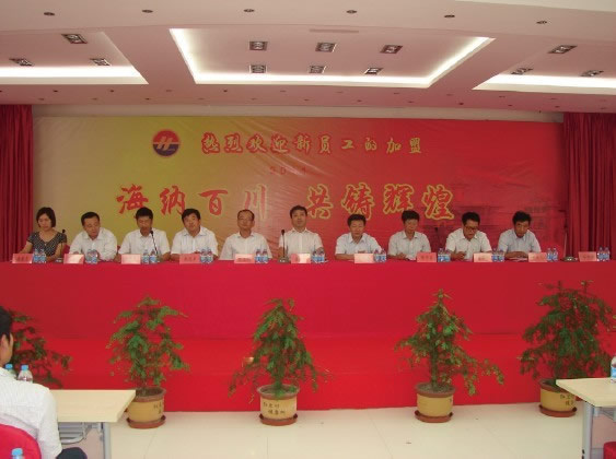 7月9日,是2011年應屆大學畢業生來公司報到的日子。公司總部海宏大廈的大廳里,漂亮的盆景映襯著鮮紅的歡迎展牌,電子屏上滾動播放著歡迎新員工,勉勵大家發奮圖強的標語,大紅的報到指引標識從大門口一直貼到三樓會議室。八點多鐘,隨著第一批新員工的到來,報到處便忙碌起來。填表、建檔、電子錄入、才藝申報;領工作服、安全帽及生活用品;樓下等待的大巴車將完成報到手續的新員工一批批送往宿舍安置。一切進行得有條不紊。新員工對公司氣派的辦公大樓、高效親切的接待工作感到滿意。