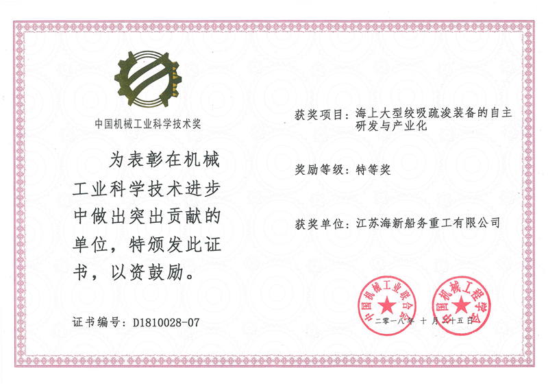 日期:2018-11-07 03:19:51 作者:熱烈慶祝海新重工榮獲中國機械工業科學技術特等獎-江蘇海宏建設工程有限公司