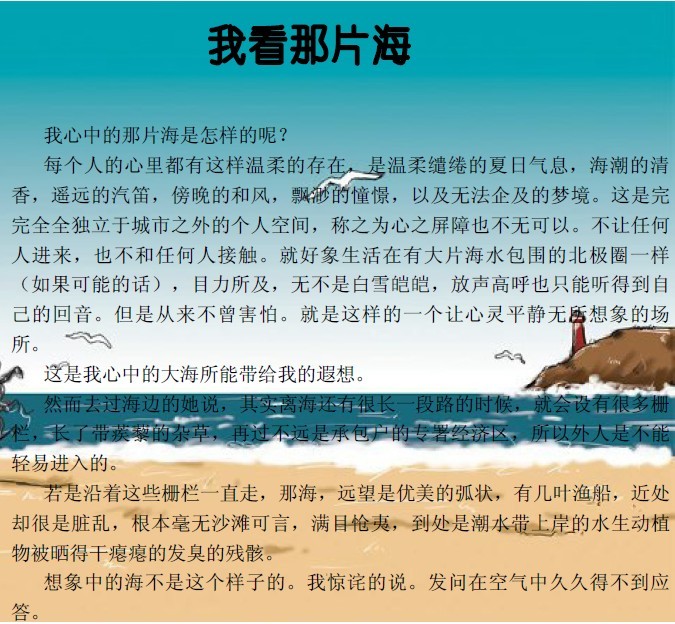 日期:2016-12-28 14:40:33  作者:【文學(xué)作品】我看那片海──財務(wù)部 施凱敏-江蘇海宏建設(shè)工程有限公司